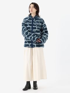 スタンドカラーの襟先をラウンドさせた、1960年のファイバーパイル誕生当時を彷彿させるデザインを採用。袖はバインダー仕様で、ミドラーとして着用した際の袖のもたつきを軽減しています。特徴的な柄は、光を反射した水面の輝きをイメージしたデザインを、ジャカード織りで表現しました。