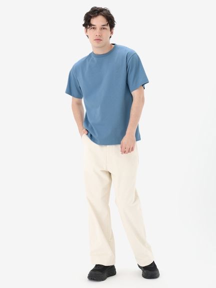 程よくゆとりのあるスタンダードシルエットで、さまざまなコーディネートに活躍。UVケア(UPF15-30、紫外線カット率85%以上)機能付き。環境への負荷に配慮して、素材の一部にリサイクル糸を使用しています。