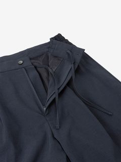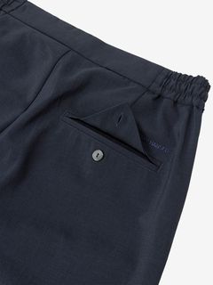 ウエストはサイド部分のみゴムを配して、リラックス感とクリーンな見た目を両立させました。