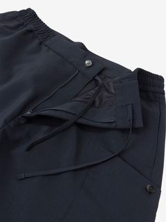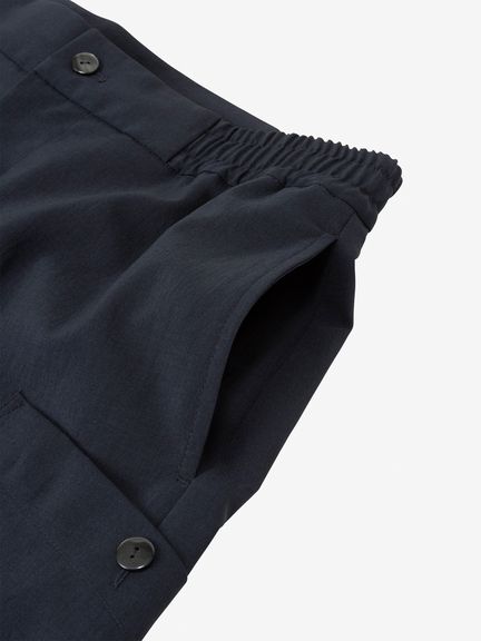 ウエストはサイド部分のみゴムを配して、リラックス感とクリーンな見た目を両立させました。環境への負荷に配慮して、素材の一部にリサイクル糸を使用しています。