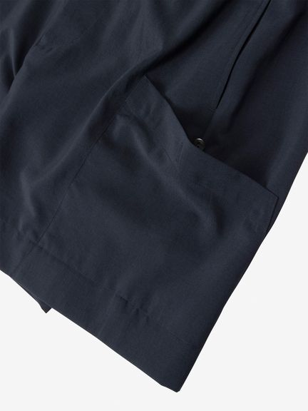 ややゆったりとしたシルエットの膝上丈で、裏地付き。サイドに大きく配したセイルデザインのポケットでマリンテイストを、ヒップのバルカポケットでフォーマルな雰囲気を取り入れています。