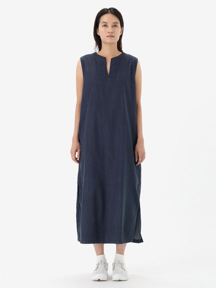 軽やかに着られる薄手タイプのデニムワンピースです。