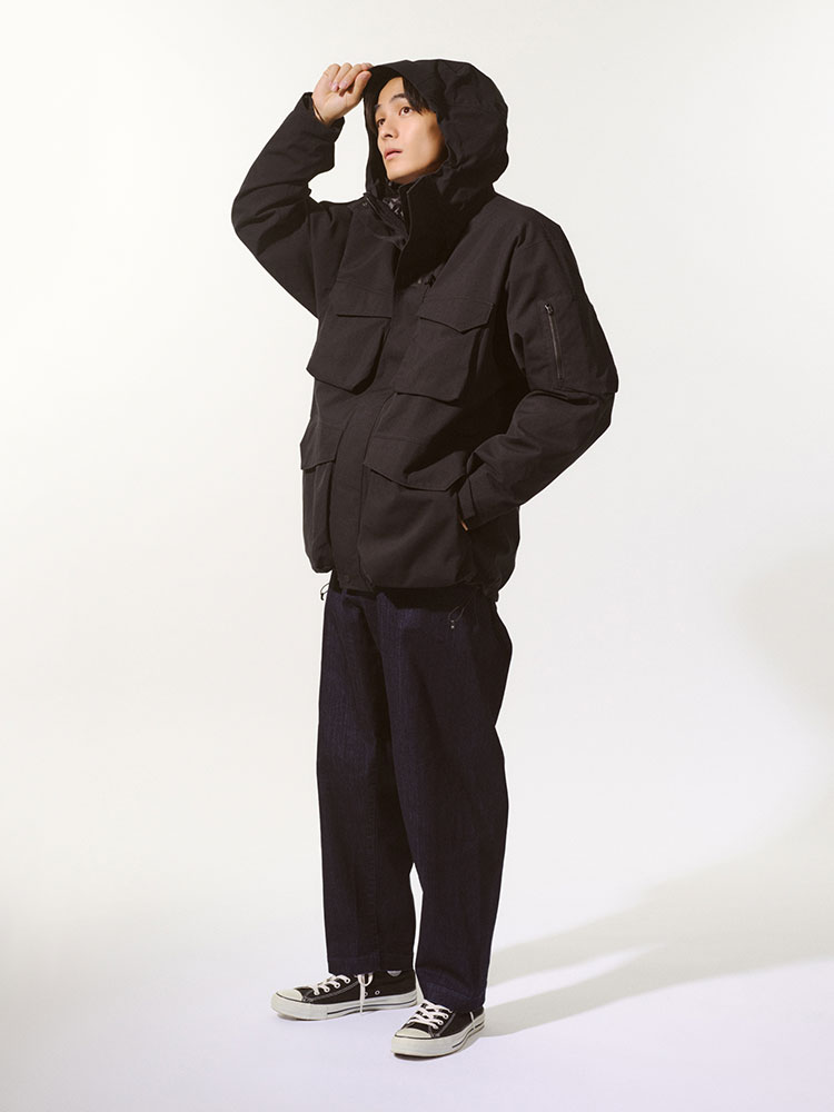 ロクヨンクロスのようなナチュラルな風合いが魅力の、防水透湿性を備えた生地を使用。コットンライクで重厚感のある見た目ながら、やわらかで快適な着心地です。