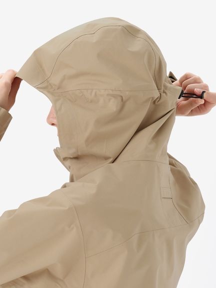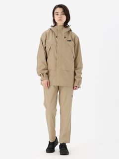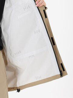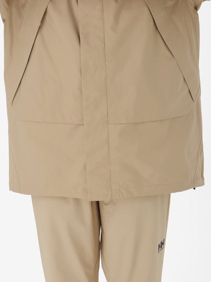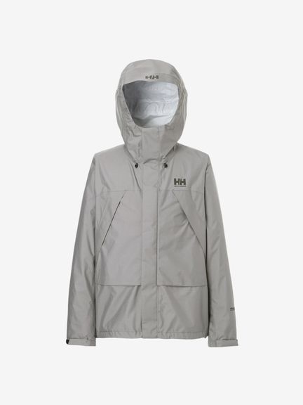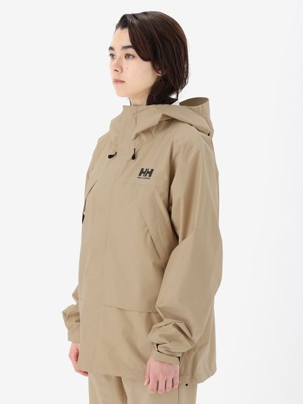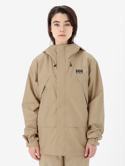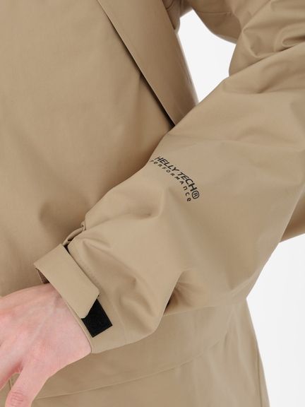 素材は、防水透湿性に優れ、雨の中でも快適さを維持するヘリーテックパフォーマンス2.5層構造。レイヤリングしやすい、ややゆったりとしたシルエット。立体裁断で、着心地のよい設計にしています。