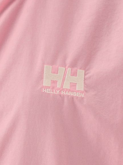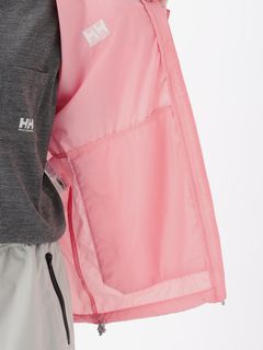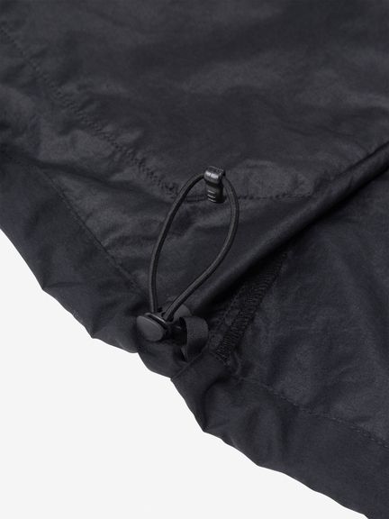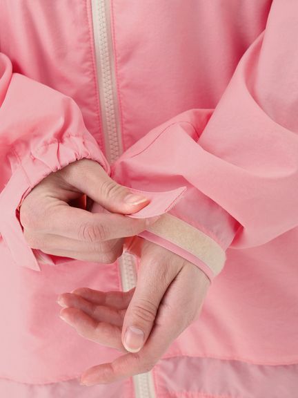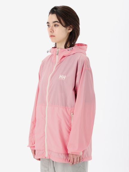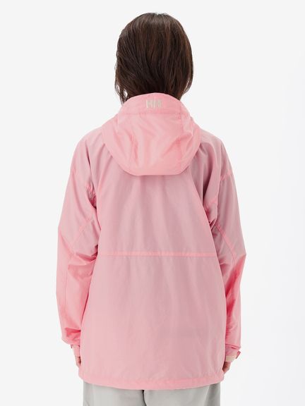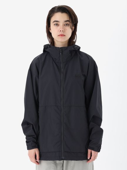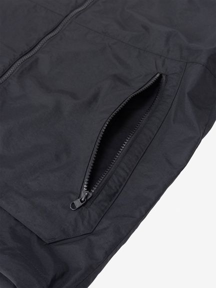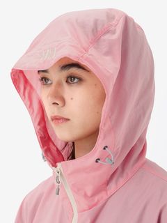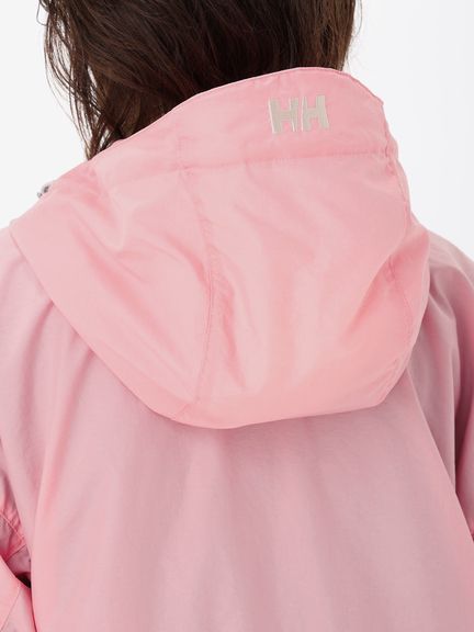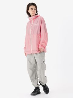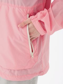 身幅や袖をやや広めに設計した、少しゆとりのあるシルエット。腰ポケットはマチ付きで、さりげないデザインアクセントにもなっています。耐久はっ水加工を施し、ドローコードでフィット感を調節できるフード付きのため、多少の雨なら対応可能。腰ポケットに本体をコンパクトに収納できるポケッタブル仕様です。環境への負荷に配慮して、再生利用可能なリサイカブル素材を使用しています。
