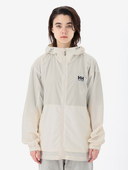 ドライ感のあるコットンライクな風合いで、胸とフードのロゴ刺繍を同色にしたシンプルなデザイン。風からしっかりと身体を守り、アクティブに動くことを想定した軽量モデルです。
