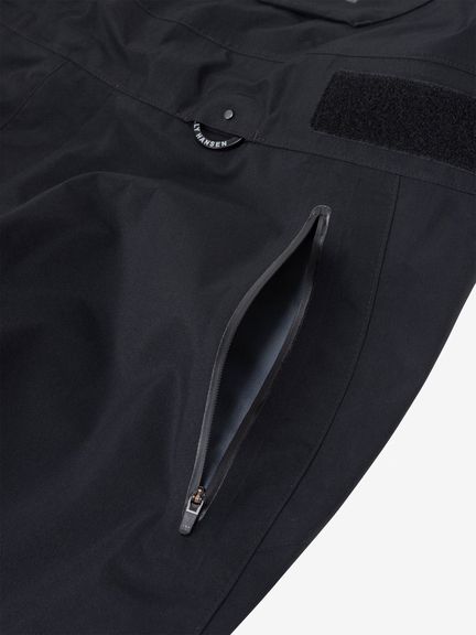 防水性に優れたGORE-TEX PROの3層構造で、耐久性の高い生地を採用しています。両腰ポケットやフロントポケット、前開き部分のファスナーを止水仕様にすることで、防水性を高めました。