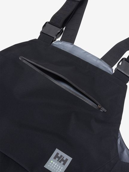 特徴的なのが、吉田氏によるフィッシング中の動作を解析してパターン設計し、釣りでの動きを妨げにくく仕上げていること。股が開きやすいパターンを採用しており、ダイナミックに動きやすいのが魅力。ショルダーベルトとウエストベルトをアジャスタブル仕様にすることで、かがむ動作が多いフィッシングシーンで体の動きに追従しやすく、パンツのずり上りやずり下がりも軽減できます。フロントポケットには、タックルボックスなどが収納可能。ウエスト部分にDカンがあり、釣り糸を切るラインカッターなど小物の装着にも重宝します。裾はサイドオープンのファスナーを長めにして、ブーツを履いていても着脱が容易。釣りで着用するときの「こんな機能がほしい」を盛り込んだ1着です。色展開はシンプルなブラックと、北欧の森をイメージしたHELLY HANSENオリジナルのウッドランドカモフラージュ柄の2種類です。