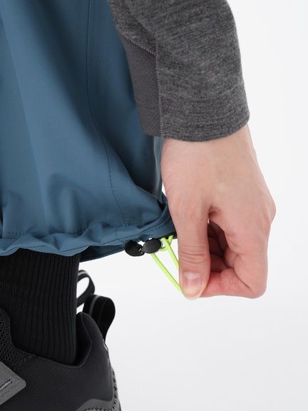 太すぎないシルエットで、防水オーバーパンツとしてはもちろん、1枚での着用も可能。膝をついての作業がしやすい位置に配したカーゴポケットは、水が入りにくいターンフラップ仕様。裾は、ドローコードを絞ることで水が入りにくくなっています。シーカヤックやパックラフトといったウォーターアクティビティはもちろん、ハイキングなどのアウトドアシーンでも活躍。アウトドアで重宝する機能性をもちながら、日常でも着やすいデザインに仕上げています。環境への負荷に配慮して、素材の一部にリサイクル糸を使用しています。