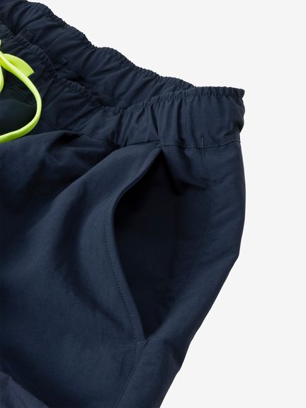 ウォーターアクティビティに使いやすいディテールも採用しており、サイドポケットの下部は、水抜けがよいメッシュ構造に。ウエストのスピンドルやサイドポケットのドローコードには、セーリングウエアをイメージしたフラッシュイエローを効かせています。
