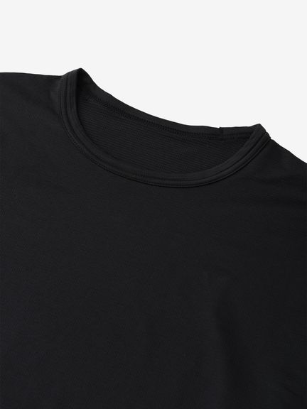 吸汗速乾性のある生地で乾きやすいのはもちろん、肌面をはっ水糸を使ったグリッド構造にしているため、かいた汗をすばやく拡散できるのが特長。グリッド構造による凹凸感があるため、肌離れがいいのも魅力です。