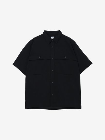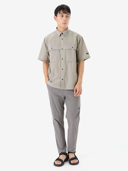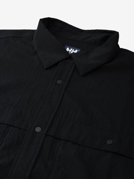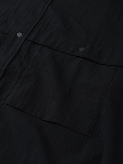 フロントボタンはクリーンな雰囲気の金属製で、着脱が容易なドットボタン仕様。両胸に、マチ付きの大きめポケットを配しています。