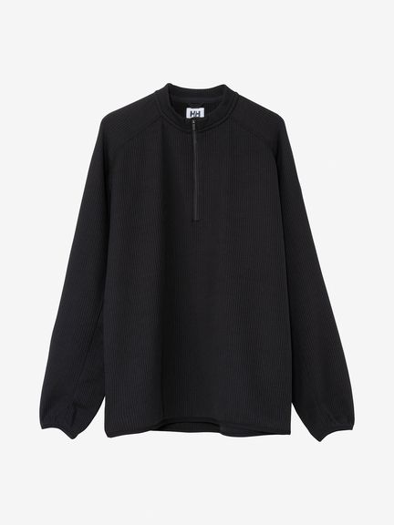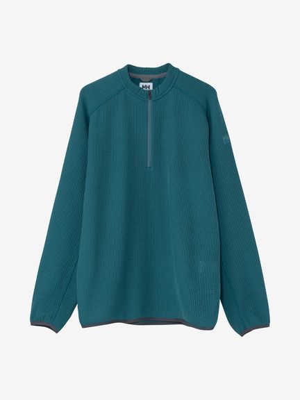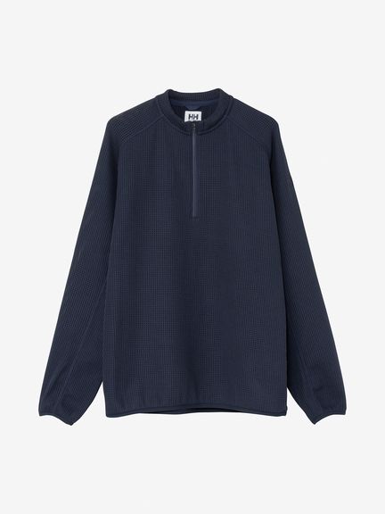 汗をかくシーンでのオーバーヒートを軽減しながら、肌寒いときのミドラーとして活躍するアイテム。簡易的な衣服内換気がしやすいハーフジップタイプです。