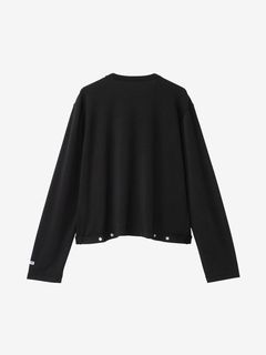 「1979年当時、アニエスベーはよくスウェットシャツを着ていました。ある夏の暑い日にふと、カーディガンを着て学校まで走っていた幼い頃を思い出し、このスウェットシャツの前を開けることを思いつきました。そしてスナップボタンがルネッサンスの服や、神父服のように狭い間隔で並んでいるようデザインし、カーディガンプレッションが生まれました。当初、カーディガンプレッションにはコットンのメルトン素材(裏起毛素材)が用いられ、直線的なカッティングに、丸襟で後ろに2つの調節用のタブがついていました。その後、キッズとメンズラインでも展開し、また、メルトン素材をレザーに変えたり、半袖にしたり、ビスチェにしたり、ウエストを絞ったりと、絶えず進化させ続けてきました。カーディガンプレッションは、独自的で時代を超えて愛されるアニエスベーの定番アイテムです。」
