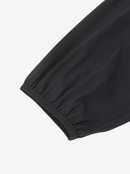 袖口には絞りを入れてボリューム感を持たせ、女性らしい印象に。袖をまくることも可能で、スタイリングの幅を広げることができます。また、後ろはラウンドヘムデザインを採用し、腰回りをさりげなくカバー。スタイルアップ効果も期待できます。脇ポケットの内側には、水はけの良いメッシュ素材を使用しています。