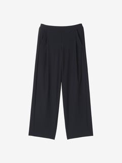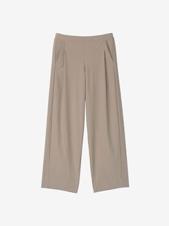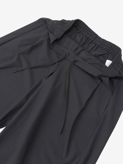 同シリーズの水着と合わせた際にもスッキリと見えるよう、フロント部分はゴムを無くし、フラットな印象に仕上げました。さらに、ウエスト部分に施されたタックデザインが腰回りをすっきりと見せつつ、裾に向かってゆったりとしたシルエットで、快適な履き心地ときれいなラインに。