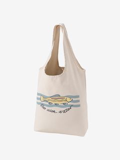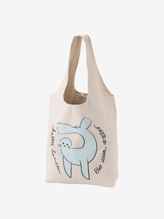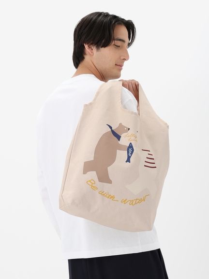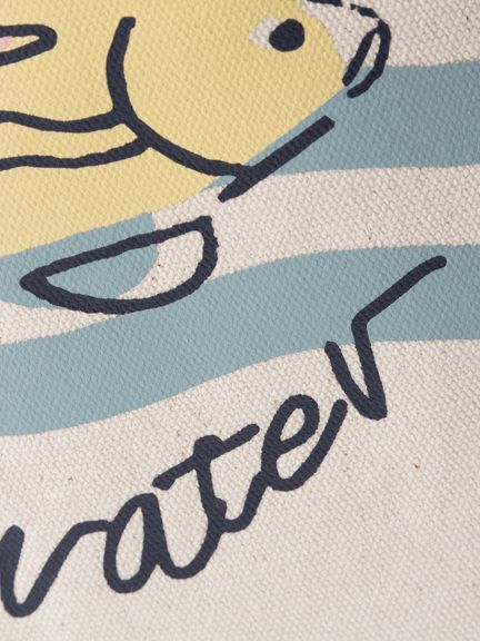 内側ポケットやキーループ、ボトルスリーブも付いた、シンプルながらも使いやすいアイテムです。プリントでは、水のまわりでの生活を楽しむ動物を表現しており、カモメ(LK)、魚(ML)、クマ(BI)、アザラシ(K)を描いています。