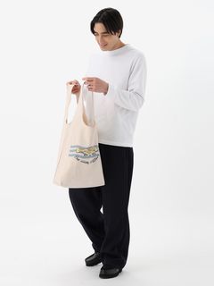 環境への負荷に配慮してオーガニックコットンを採用。持ち手部分としてくり抜いた生地を内側ポケットとして活用して無駄を減らした、レスウェイストなアイテムです。しなやかな質感で畳むとコンパクトになるため、エコバッグとして重宝。丈夫さも備えたキャンバス地なのでメインバッグとしても使えます。