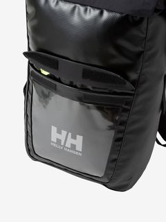 フロントのクリアウィンドウはフラップポケット型になっており、中に入れたものが見えるデザイン。シーギアを手がけるHELLY HANSENらしい、チャート(海図)をすぐに確認するためのポケットから着想したデザインで、見せる収納が楽しめます。クリアウィンドウ内には、キーループを配置。