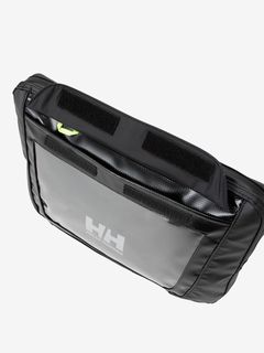 フロントのクリアウィンドウはフラップポケット型になっており、中に入れたものが見えるデザイン。シーギアを手がけるHELLY HANSENらしい、チャート(海図)をすぐに確認するためのポケットから着想したデザインで、見せる収納が楽しめます。クリアウィンドウ内には、キーループを配置。