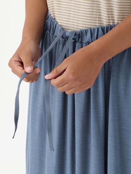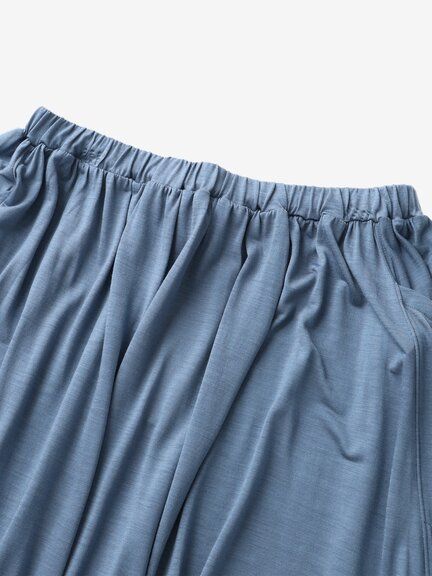 サイドを二重仕様にすることで、ほどよいリラックス感がありながらも、すっきりとしたシルエットに仕上げたアイテム。小物の収納に便利なサイドポケットがアクセントとなり、たっぷりとした生地のドレープが美しく揺れます。ウエストはゴムを配した自然な穿き心地で、ひもを結んでフィット感を調整できるドロ―ストリング仕様です。