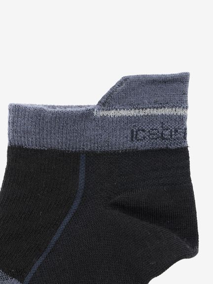 icebreakerでは最も薄手のタイプで、あえて裏パイルなしでクッション性を持たせず、さまざまなシューズと合わせやすくしています。かいた汗を繊維内に含みにくいウールの特性により、擦れが少なく、肌へのあたりが優しいのも魅力です。