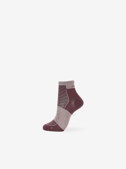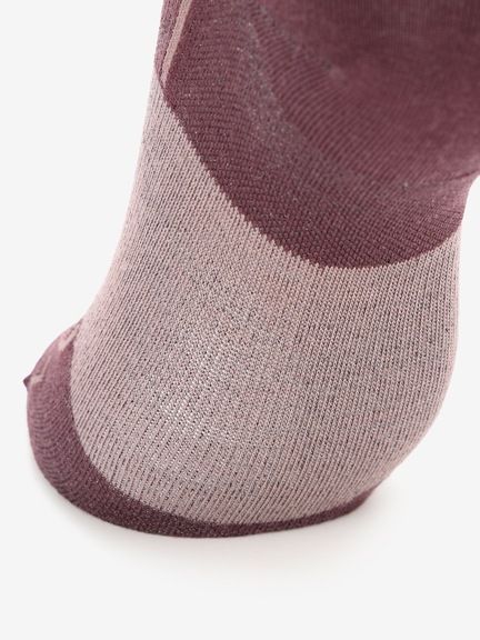 icebreakerでは最も薄手のタイプで、あえて裏パイルなしでクッション性を持たせず、さまざまなシューズと合わせやすくしています。かいた汗を繊維内に含みにくいウールの特性のため、擦れが少なく、肌へのあたりが優しいのも魅力です。