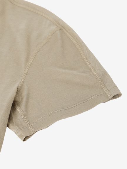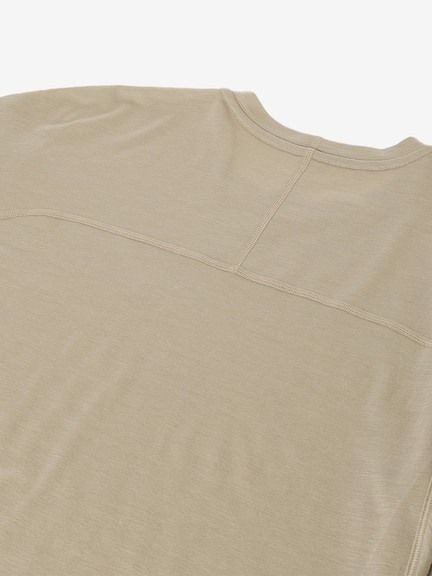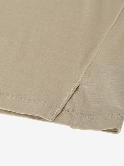 細い糸を使うことによる軽量性もあるためアウトドアアクティビティを楽しむシーンで活躍。ややフィット感のあるシルエットで運動時に動きやすいパターン設計を採用。サイドにスリットを配して通気性を高めています。