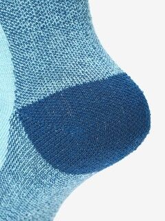 素材は、保温性に優れたメリノウールを中心に、ナイロンとポリウレタンを使用することで、摩耗などに対する強度と伸縮性を高めました。部位により編組織を変えることで、快適性を向上させています。