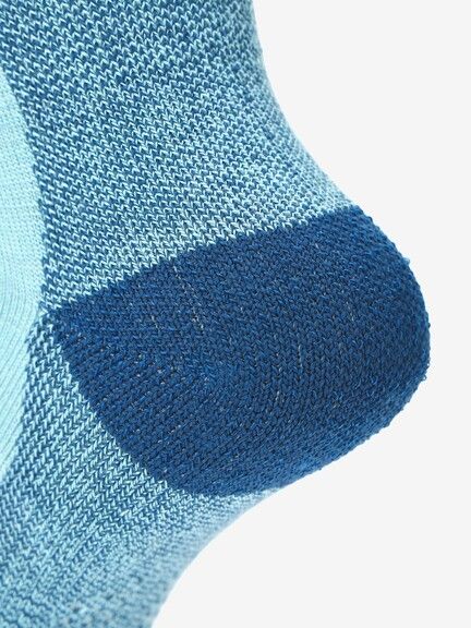 履き口は、ズリ落ちしにくく締め付けすぎない幅広ゴムを採用。レッグ部分は、部分別のクッション構造で快適なフィット感を追求。レッグ部分とフット部分の間の甲側は、生地のたまりやもたつきを軽減する構造にしています。つま先は、左右の足の形にフィットする立体的な構造で、肌面をフラットな縫製で仕上げました。かかとは、アキレス腱を保護するアキレスサポートと、足首のフィット感を高めるアンクルサポート仕様に。土踏まずはインステップサポート仕様です。