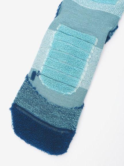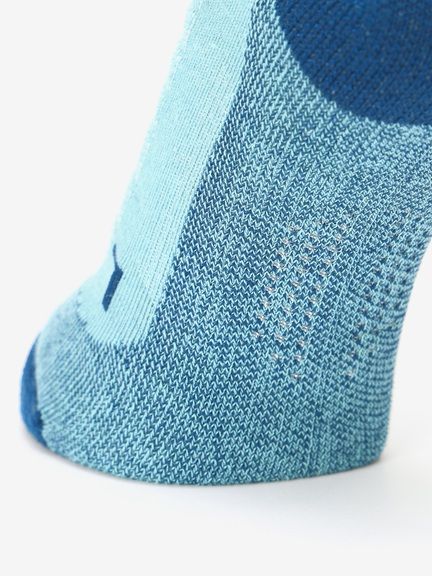 [ミディアム]タイプの特徴は、フット部分全体を包む立体的なクッション構造。甲部分は、ナイロンをブレンドして強度を高めています。
