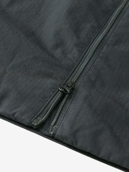 フードと袖口はフィット感の調節が可能。フロントは、開け方次第で衣服内環境を調節しやすいダブルスライダー仕様。