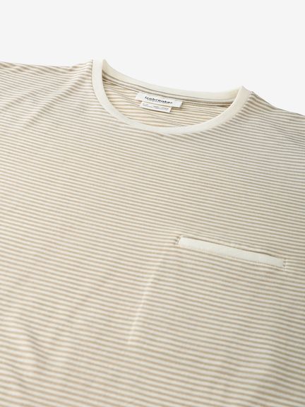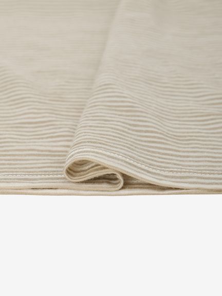 メリノウールだけで仕上げた150g/m2という薄手のジャージー生地は、シーズンや着用シーンなどの汎用性が高い素材。暑くても寒くても衣服内の心地よい暖かさや優れた調湿性が保たれるため、メリノウールの特性による快適な着心地のよさを肌から直に感じられます。