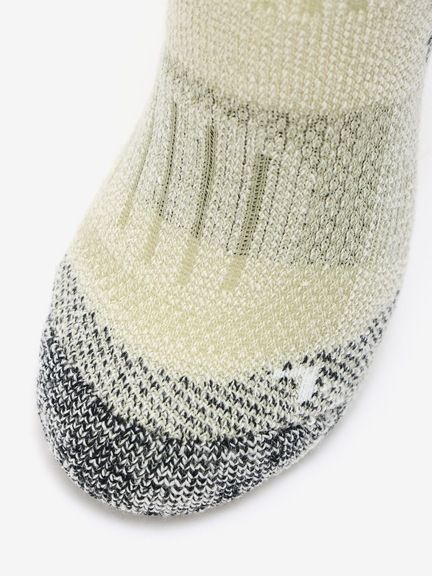 主素材としてメリノウールを使用した、本格的な登山仕様の厚手ソックス。ウールのブレンド率が高く、天然繊維がもたらす保温性や快適性に優れています。