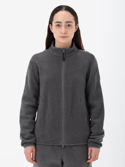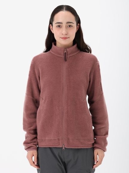 クラシックな雰囲気のパイル状フリース生地を使ったフルジップトップ。