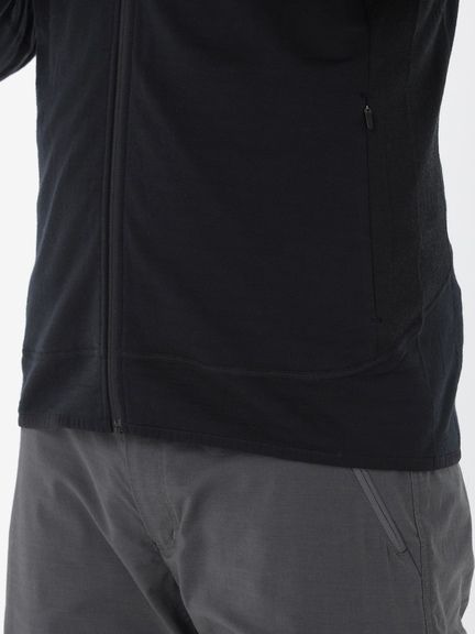 - 保温性と通気性を兼ね備えた機能素材/脇下ガセット仕様/ハンドポケット付/サムループ付/フラットシーマー/ドロップテール/オフセットシーム
