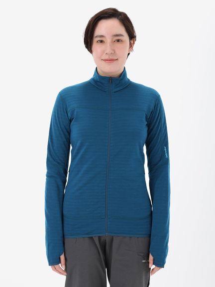 トレッキングやスノースポーツで活躍する暖かいフルジップトップ