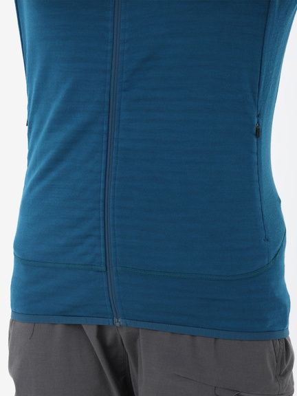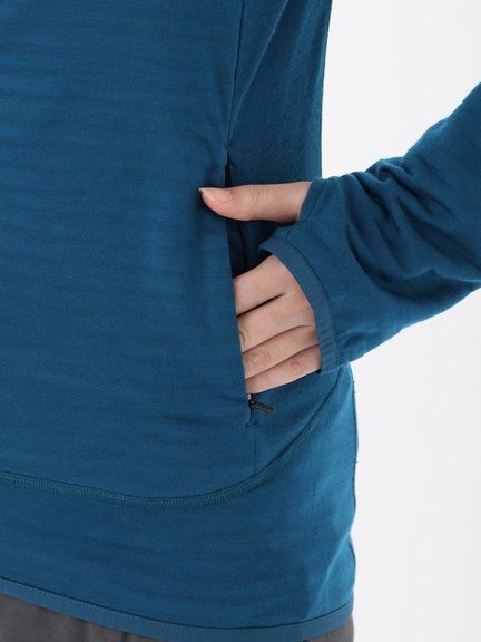- 保温性と通気性を兼ね備えた機能素材/脇下ガセット仕様/ハンドポケット付/サムループ付/フラットシーマー/ドロップテール/オフセットシーム