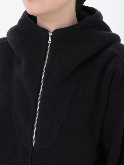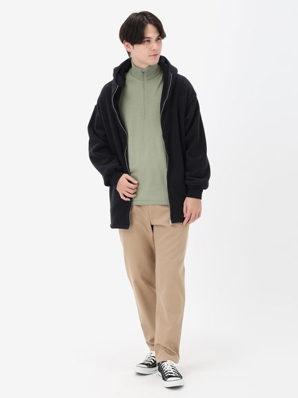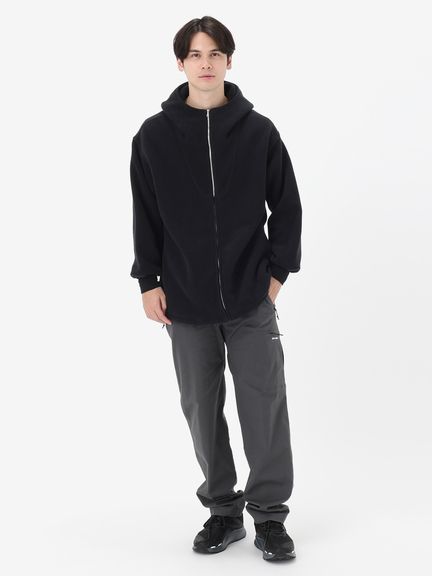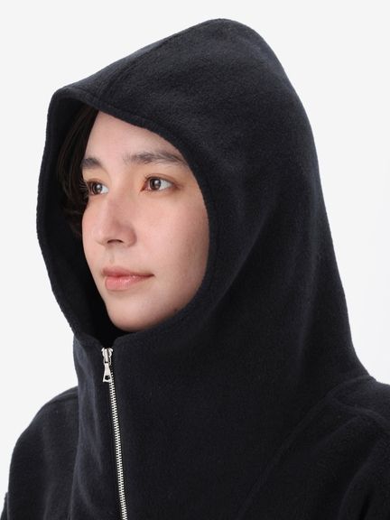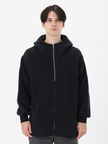 特徴的なのが、アノラックのように見えるフロントジップのデザイン。途中からファスナーが目立ちにくい仕様にすることで、アノラック風に見えつつ、フルジップの着脱しやすさを備えています。