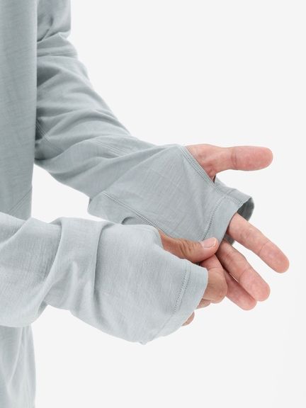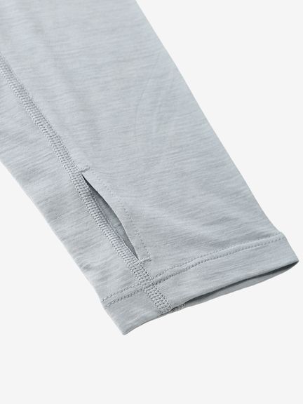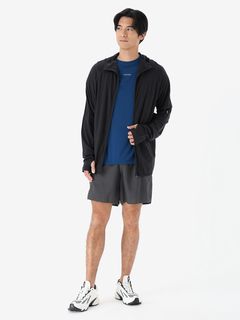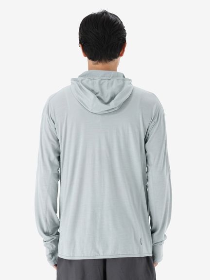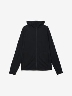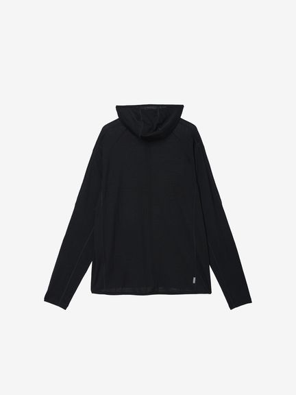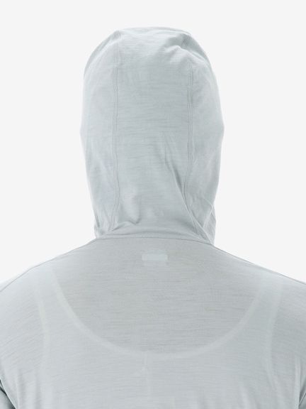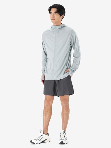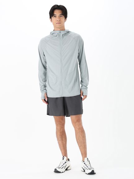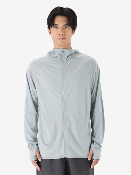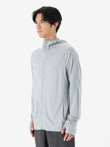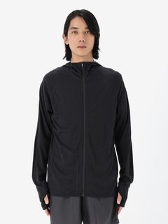スマートなシルエットながら重ね着しやすいデザインで、運動時に動きやすい変形ラグランスリーブのパターン設計を採用。フードは、コンパクトに仕上げています。UVガード機能(UPF30~50+、紫外線遮蔽率90%以上)も備え、アウトドアアクティビティを楽しむシーンで活躍します。