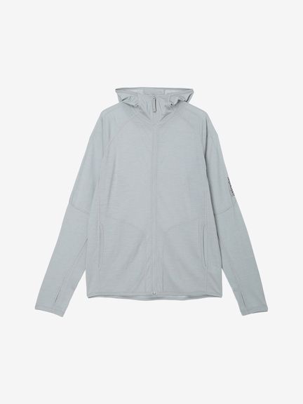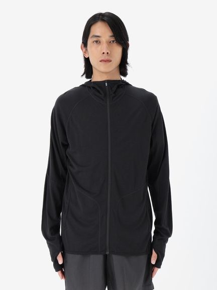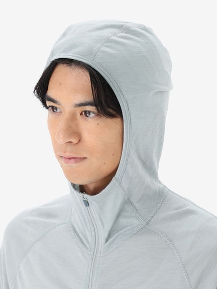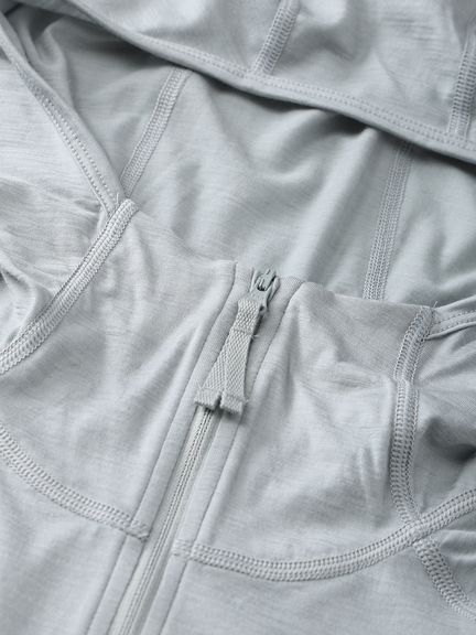 優しい肌触りとしなやかな風合いを追求し、メリノウール100%の薄手生地で仕上げたジップフーディ