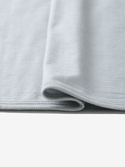 17.5ミクロンの極細メリノウールを高密度に編み、やわらかくしなやかな肌触りに。ウールがもつ断熱性と吸放湿性が、暑さや寒さをほどよく調えて心地よく過ごせます。汗冷えやにおいを軽減し、さらりとした肌ざわりで動きやすく、日常からアクティブシーンまで快適に使えます。