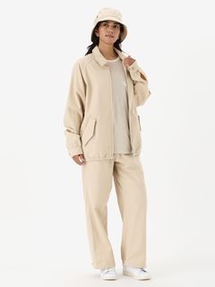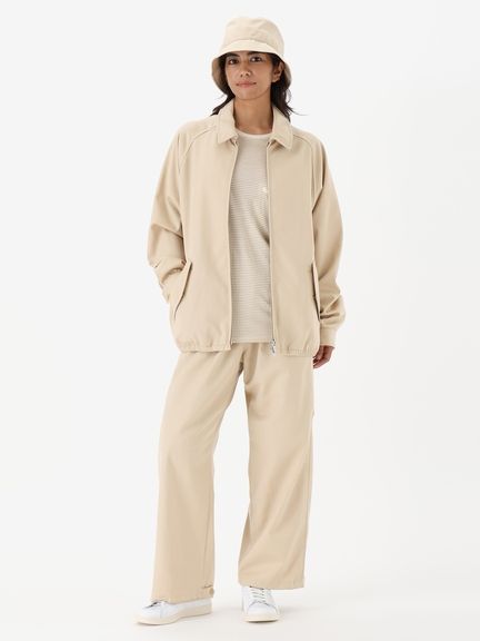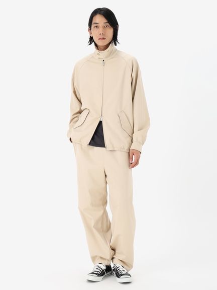 メリノウールとコットンという2つの天然繊維を組み合わせたツイル生地で仕上げ、街や旅先でのスタイルになじむデザインです。ゆったりとしたラグラン袖は動きやすく、下に合わせるものを選びません。