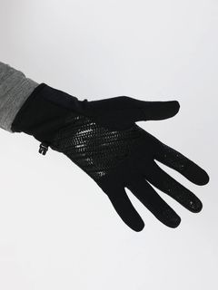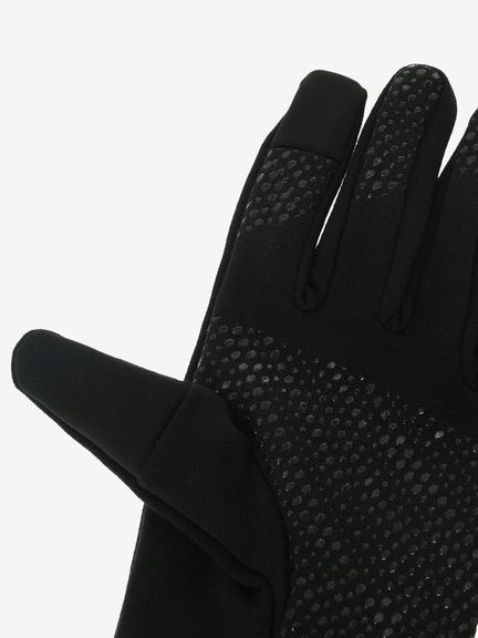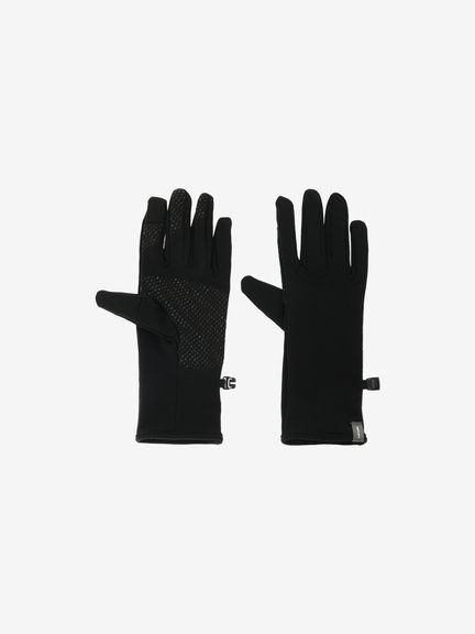 グローブ内の温度調節機能があるメリノウールに、しなやかなフィット感をもたらすライクラを交編した生地を使用。肌面をパイル仕様にすることで、さらに肌当たりをよく仕上げています。手のひら側には、グリップ力を高めるシリコン素材を採用。親指と人差し指に合成皮革をあしらい、タッチスクリーン対応にしています。