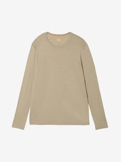 シンプルなクルーネックタイプで、同系色刺繍ロゴのみのすっきりしたデザインに仕上げています。素材はメリノウール100%で、肌に直接触れてもチクチクしにくい優しい肌触りが特徴。天然素材の心地よさと機能性を併せ持つ1着は、本格的なアウトドアシーンから日常の保温着まで幅広く活躍します。