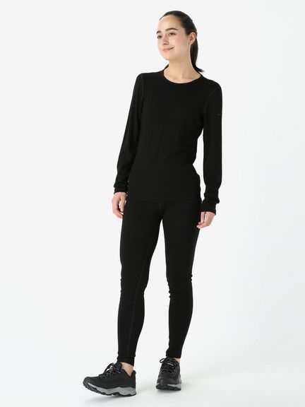ニュージーランド産のメリノウール100%で、260g/m2の厚手のため寒冷期でも高い保温力を発揮。スリムシルエットで身体へのフィット感を高め、さらに保温性を向上させています。肩の縫製ラインを前後にずらすことで、バックパックとの干渉を軽減。裾はドロップテールを採用して、背中の露出を抑えたデザインに。チクチク感の少ない優しい肌触りや衣服内の温度調節機能、天然の臭いにくい効果といったウールの特性を備えています。