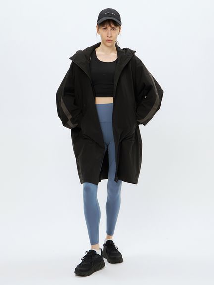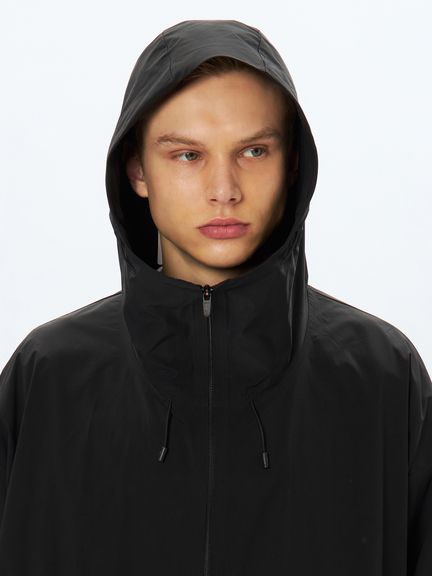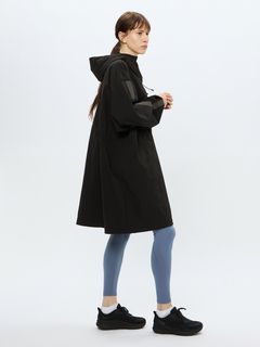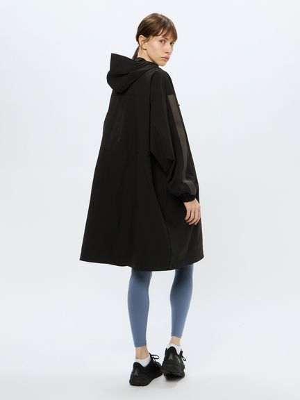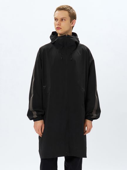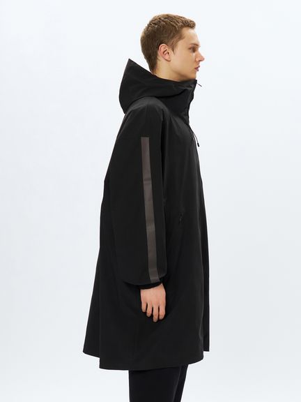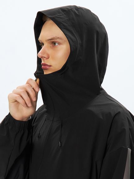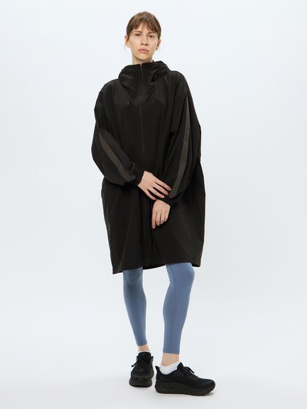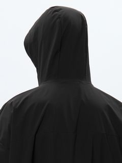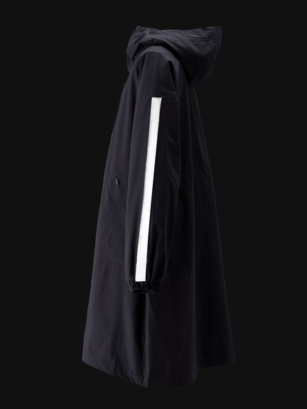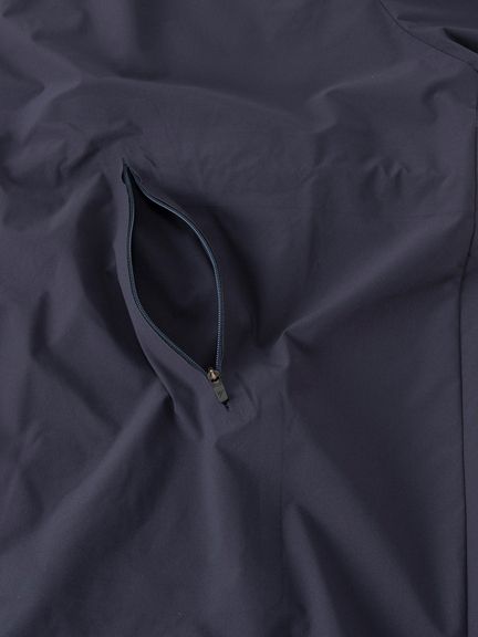 ポリウレタンを使わないメカニカルストレッチ生地は軽い着心地で、アクティブなシーンから日常まで快適に着用できます。両サイドにファスナーポケットを配置。フロントファスナーは下からも開くことができる逆開ファスナー。ウエスト内側にアジャスターが付き、シルエットの調節が可能です。袖にはリフレクトのラインを配置し、夜間の視認性を高めると同時にスポーティな印象を演出しています。大きめのフードは、アジャスターでフィット感の調節が可能。