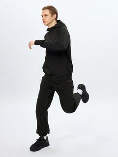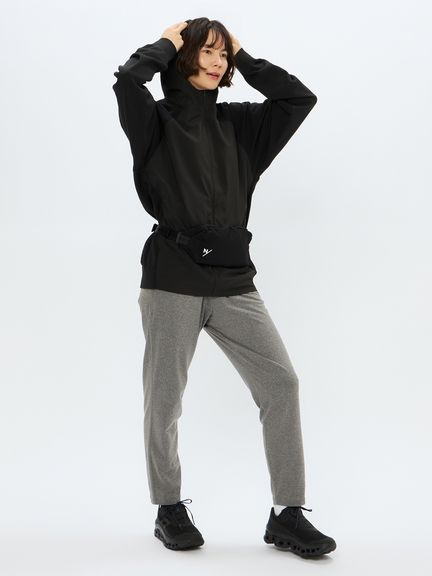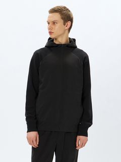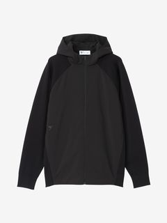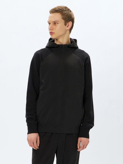 マットな布帛とニットの組み合わせで、ウォームアップ時の寒さを軽減。デイリーユースにもなじむフード付きジャケットです。