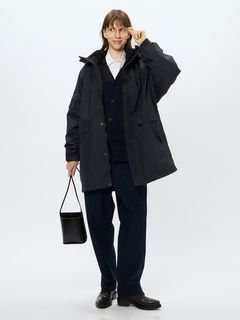 アウターは重ね着のしやすいリラックスシルエット。ユニフォームのような品のあるデザインに仕上げています。