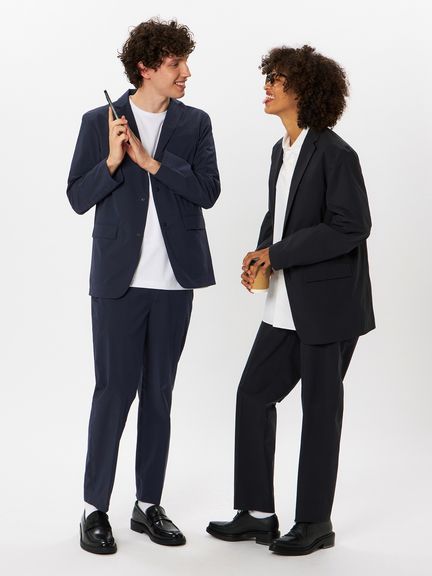「よく働きよく遊ぶ」そんなライフスタイルを体現するテーラードジャケット。はっ水性、ストレッチ性に優れた高機能でかつマットな見た目のポリエステル素材を採用。縫い目のないフラットな仕上がりを可能とする圧着技術などにより、ジャケットとしての美しさを追求している。裏地のない一重仕立てにすることで、軽量かつ快適な着心地を実現。ご自宅でのお手入れが可能。仕事や遊び、オンとオフ、私たちの生活にある様々な境界線を越え、そして私たちのマインドシフトをシームレスに繋いで行く一枚。